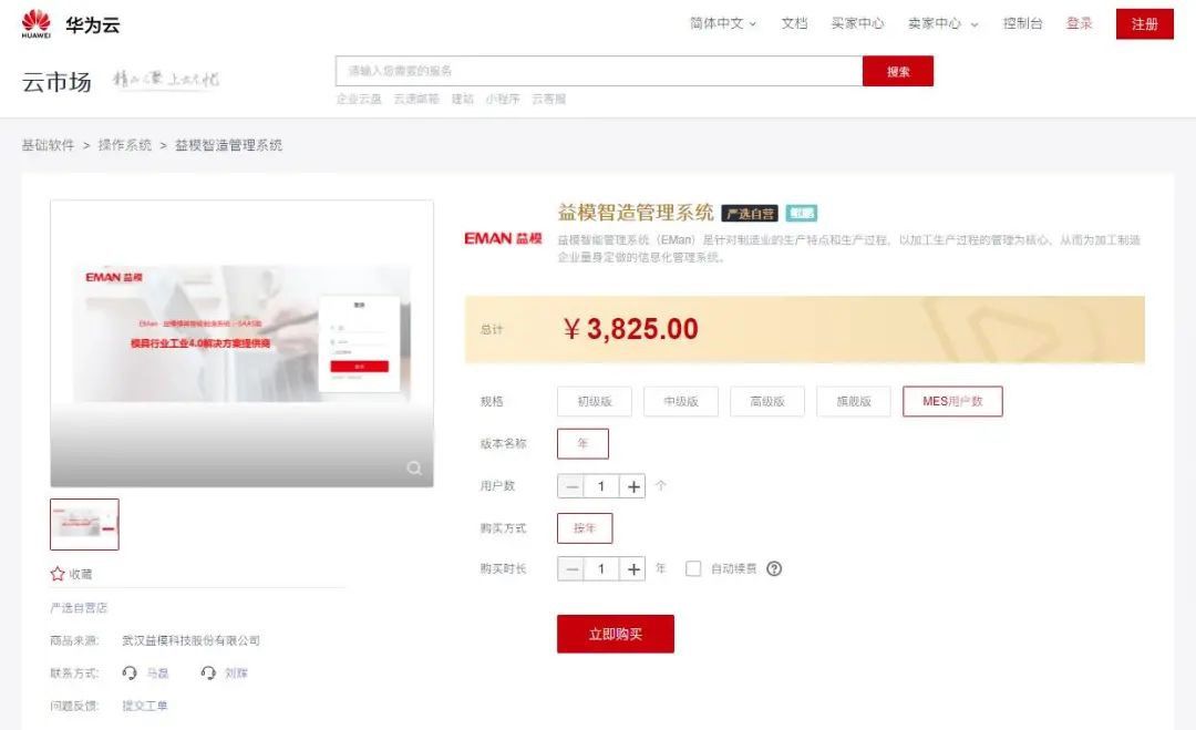 严选商品:益模智造管理系统华为云云市场 助您上云无忧