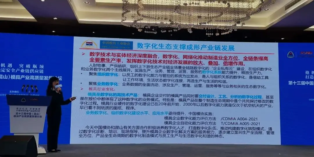 10月29日,由中国模具工业协会、昆山国家高新技术产业开发区共同主办的第十三届中国(昆山)模具产业高质量发展论坛在昆山成功举办。本次论坛旨在抢抓机遇,突破瓶颈,打造稳定安全产业链供应链,助力模具产业高质量发展,来自模具及上下游行业的专业人员200余人参加。