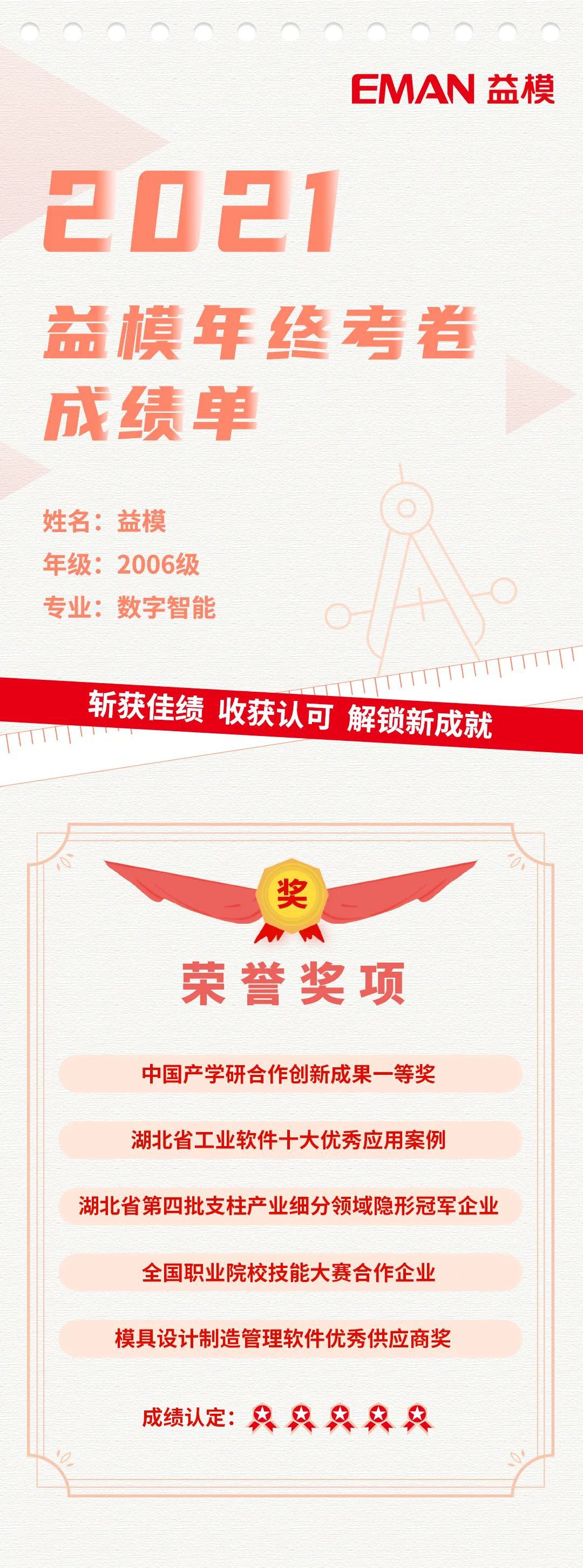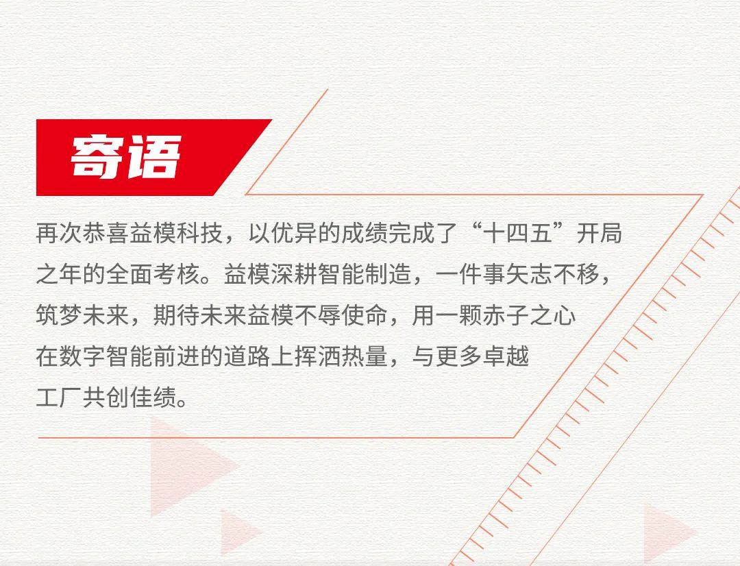 一年岁末,新年的钟声马上敲响,即将过去的2021年,益模交上了较为满意的答卷,为来年的新发展新突破奠定了良好基石。一起来看看益模的优秀答卷吧!