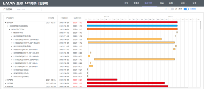 益模APS可以实现来单即排,插单排程,进行智能化排产,大大减少了注塑工厂计划所用时间, 以精准的、可执行的计划指导生产,帮助企业减少在制品、原料、成品库存。企业可以实时掌握订单的生产情况,必要时及时调整干预,提升设备利用率以及生产有效产出,确保订单准时交付。