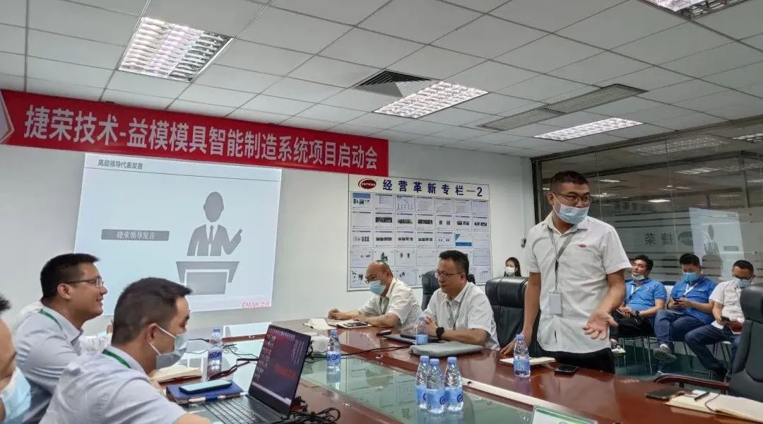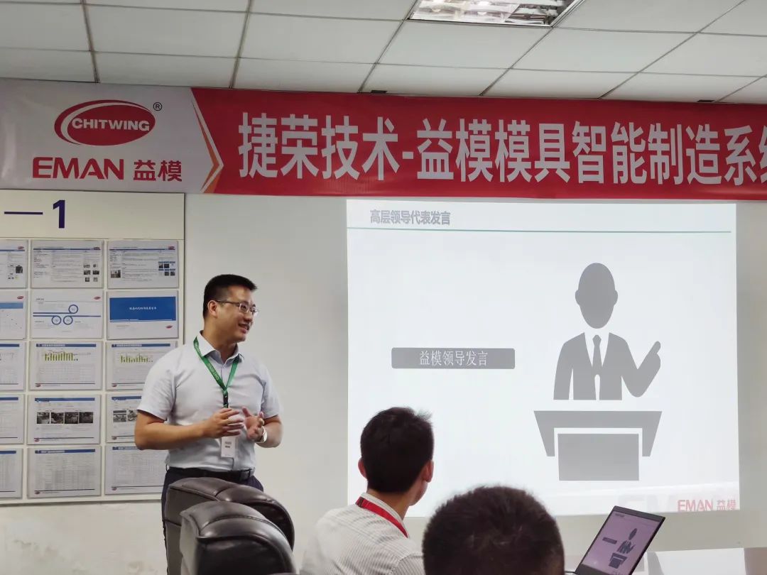 目前捷荣的数据比较滞后,每天需要10多个人去处理各种数据,数据更新不及时,计划就跟不上,效率自然也跟不上。传统加工方式要转型上系统是必然的,我们要借助MES系统,让数据更新及时,模具加工的进度清晰化、模具的成本透明化、提高加工效率的同时降低对人力的依赖。接下来项目推进的过程中,希望所有项目人员发现问题及时沟通积极解决问题,与益模团队一起全力以赴,确保项目落实到位。