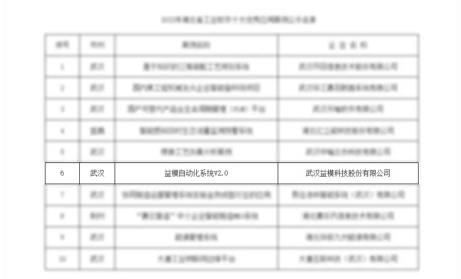 这是继2021年益模模具智能制造系统(益模模具MES)入选湖北省工业软件十大优秀应用案例之后,益模的又一产品得到政府部门的权威认可,充分彰显了益模在智能制造领域科技创新的强大实力和科研成果的高效转化能力。