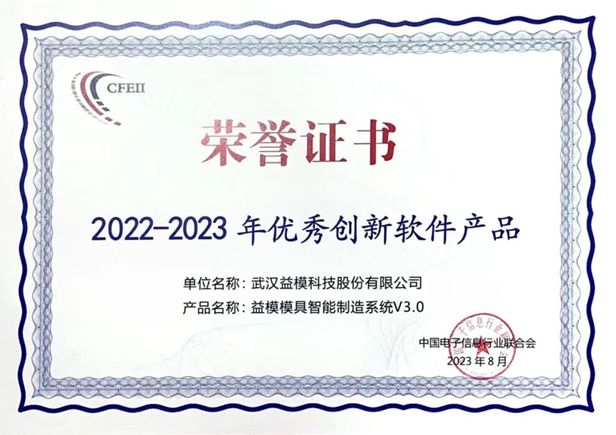 益模核心产品——模具MES(益模模具智能制造系统)凭借强大的产品实力、领先的功能应用、产品覆盖的应用范围及优质的市场口碑,成功入选2022-2023年度优秀创新软件产品推广目录。入选多项行业权威榜单,体现出益模产品实力、技术能力及服务能力再一次得到政府、行业和市场的高度认可。未来益模将在政策及区域优势的大力推动下,持续开展关键核心技术攻关,用更优质高效的解决方案助推更多制造企业明晰转型思路、优化转型实践、提升转型效能。
