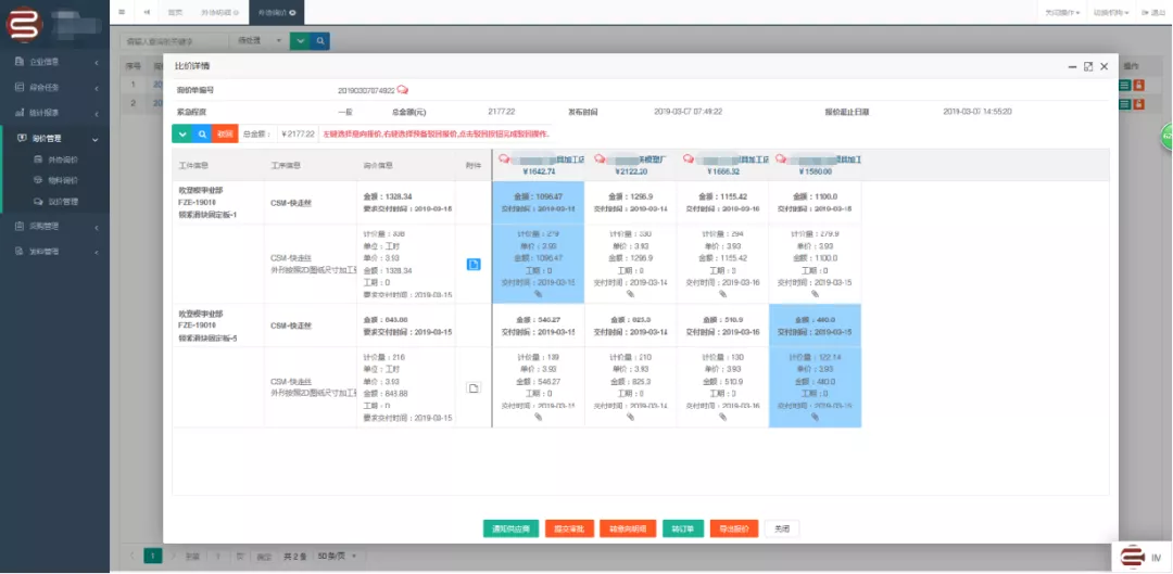 传统模式下,供应商与模具企业间处于割裂的状态,上下游部门和公司之间无法及时交流,后续管理难度增大,无形抬高了试错成本。借助帮采通,可线上管理采购全过程,打造流程标准化,实现从供应商管理、寻源报价比价、订单管理、入库管理、对账财务管理等全流程的数字化覆盖;同时可以把采购人员、销售人员、项目人员、财务人员及供应商共享在同平台,从内部打通到外部联接,充分利用模具产业上下游资源。