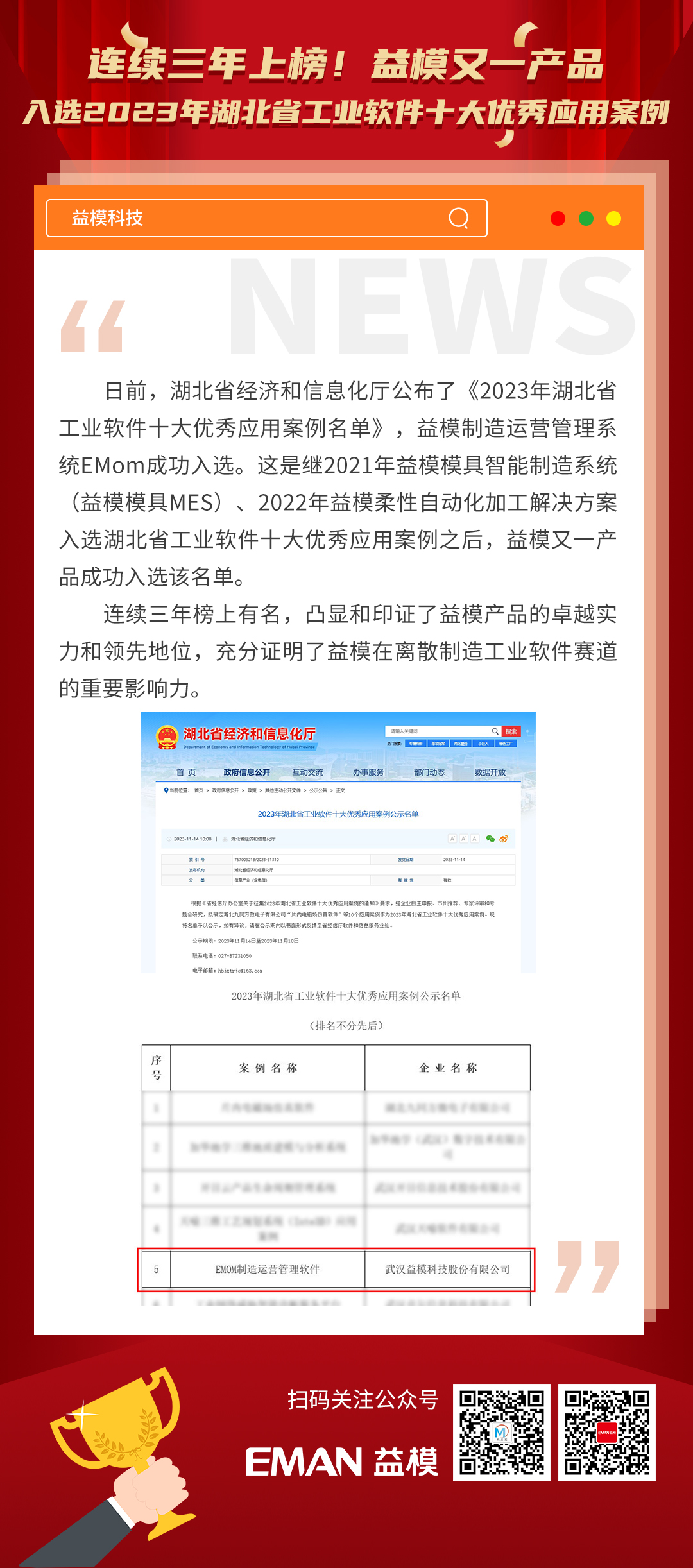 荣誉是肯定,更是奋斗不止的动力,益模已在自主研发新一代工业软件的道路上深耕近20年,推出了一系列具有自主知识产权的工业软件产品,通过扎实的技术积累和行业耕耘优势,累计帮助700多家离散制造企业实现数字化转型和智能化升级。