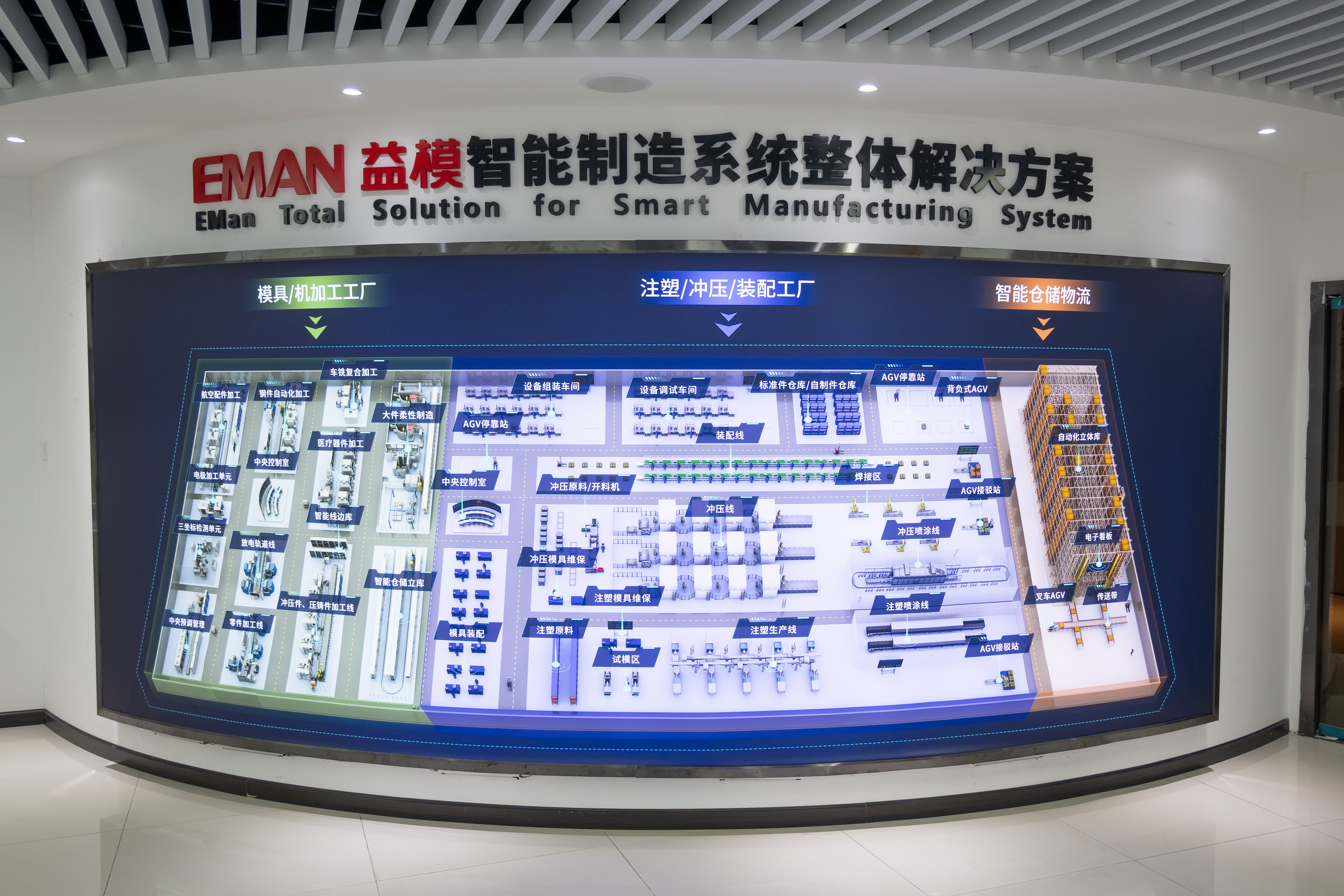 在益模智能制造展厅,李培根院士详细了解了益 模以数字化生产管理系统(MES)、高级排产系统(APS)、柔性制造系统(FMS)、厂内智能仓储物流(AS/RS)为核心的一站式制造运营管理(MOM)全场景解决方案、以及益模整体解决方案在汽车、家电、医疗器械、消费电子、航天航空等行业领域的实际应用案例。