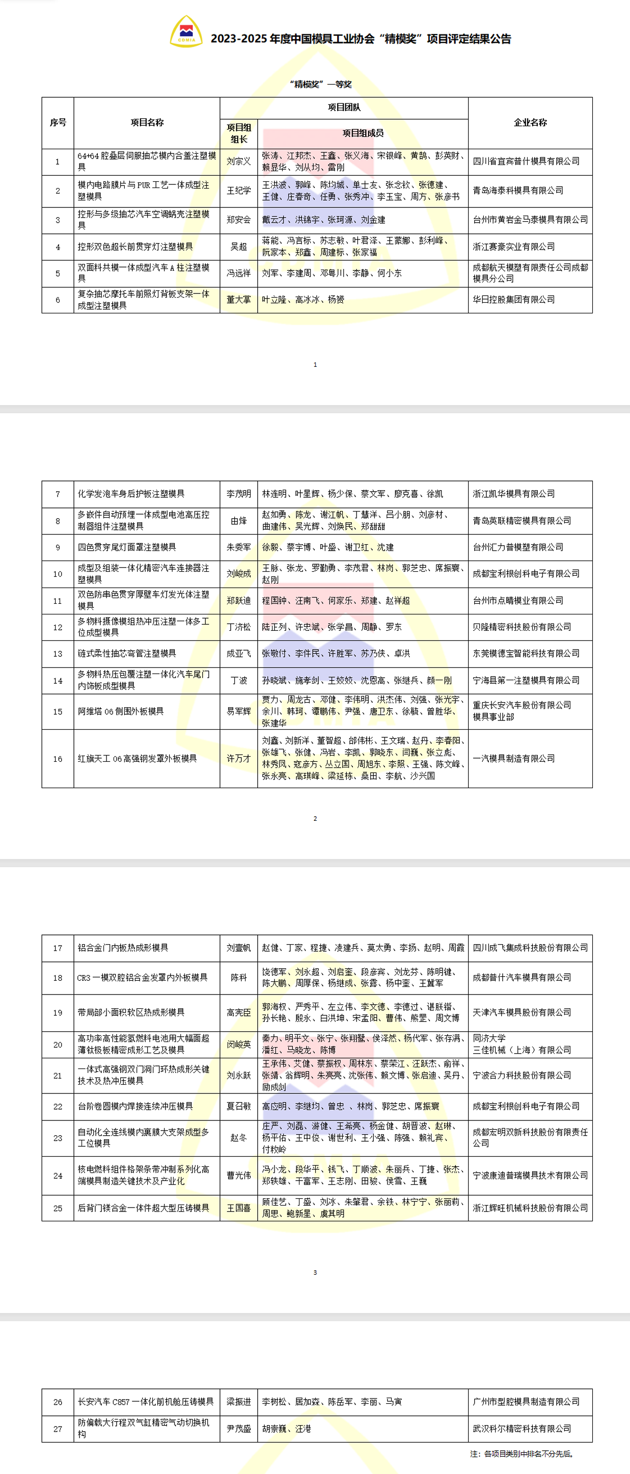 获奖成果:2023-2025年度“精模奖”项目,一等奖(国际先进水平)从严控制产生27项,二等奖(国内领先水平)38项,三等奖(国内先进水平)34项。