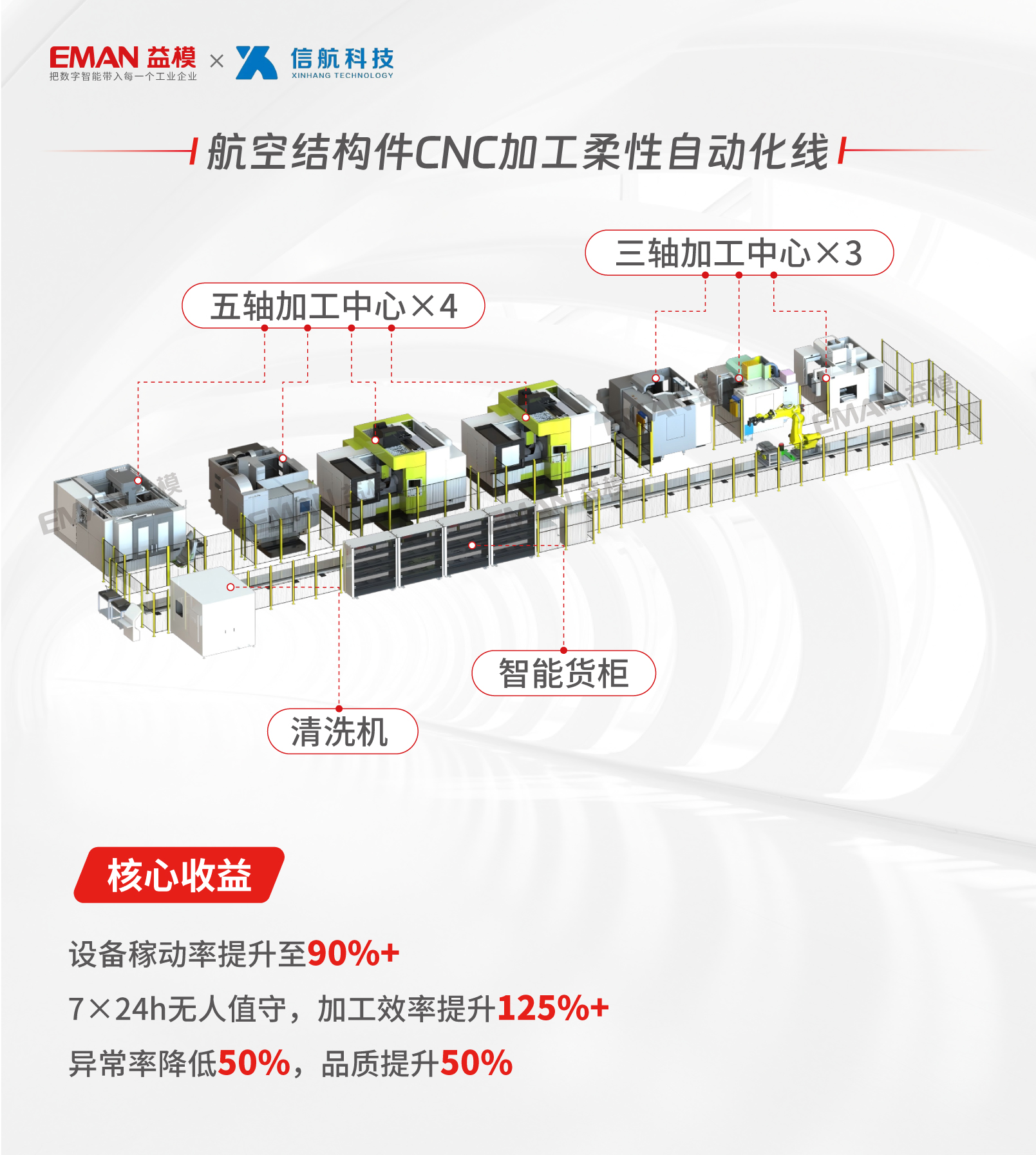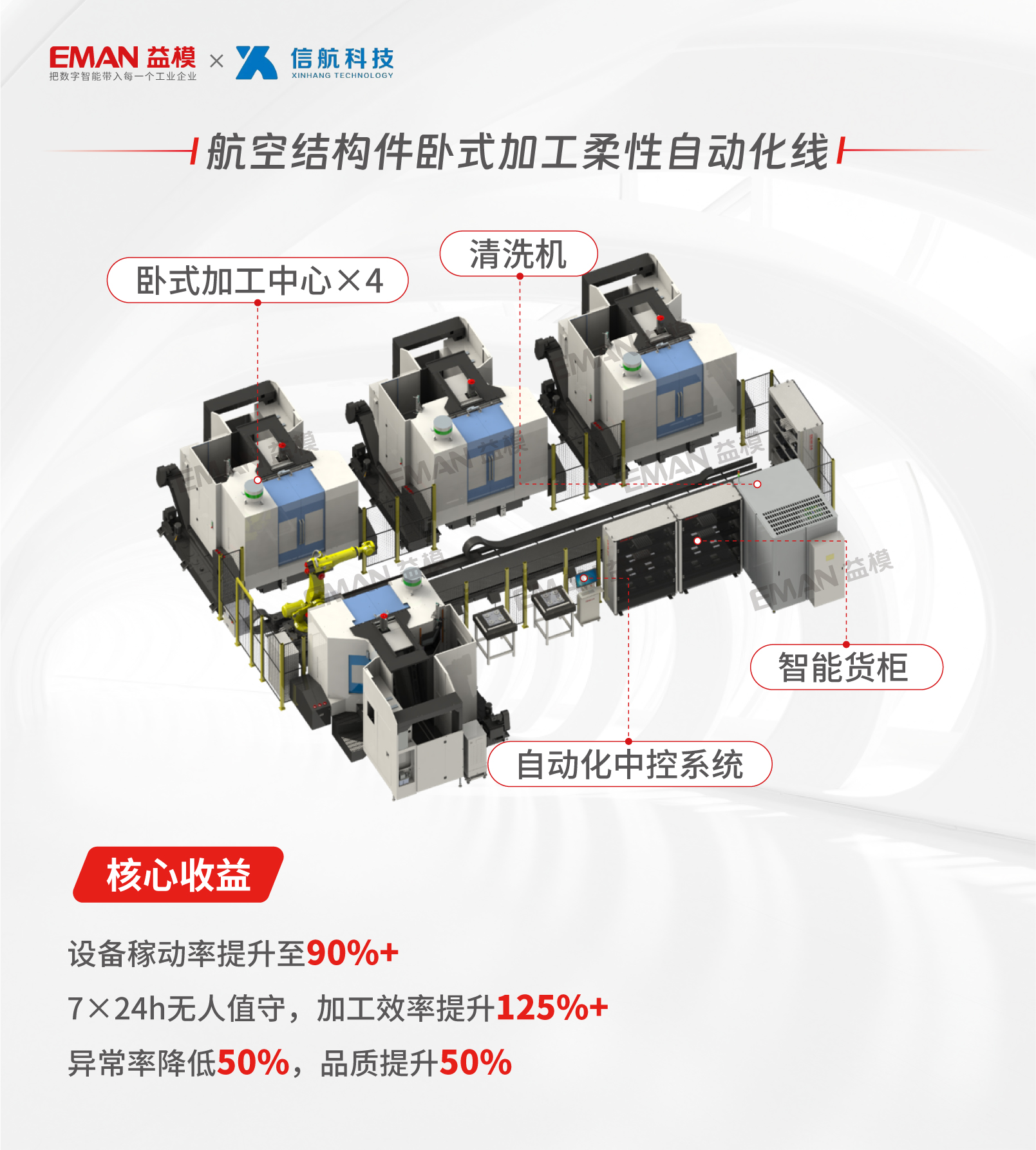 益模柔性自动化线不仅助力信航科技成功应对了C919批产订单的挑战,更推动了国产航空零部件制造迈入智能时代。加工效率125%的提升,是技术赋能的生动见证。