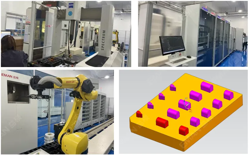 通过搭建益模 “CNC+CMM + 自动清洗” 柔性自动化线,科梦实现了多齿电极全流程自动化: